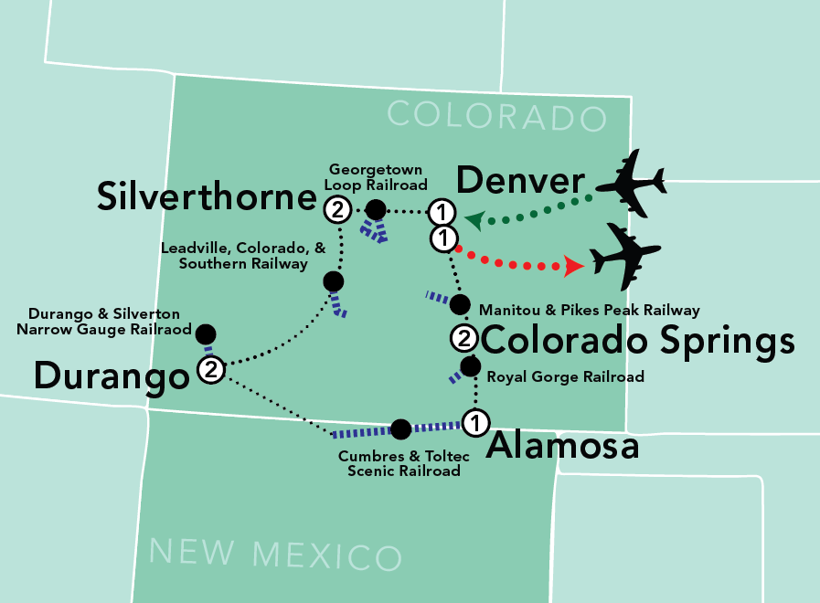 Ride six historic Colorado railways, including the Durango & Silverton Narrow Gauge Railroad and the Cumbres & Toltec Scenic Railroad